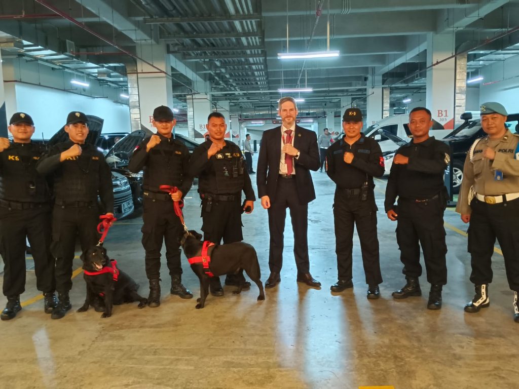 SEMARANG – Maspolin.id ||Polda Jateng Anggota Polri dari unsur Jihandak Brimob dan K-9 Polda Jateng melakukan sterilisasi lokasi pertemuan Delegasi dan Menteri Ekonomi peserta ASEAN ECONOMIC MINISTERS (AEM) ke 55 di Semarang Jawa Tengah, Selasa(22/8).