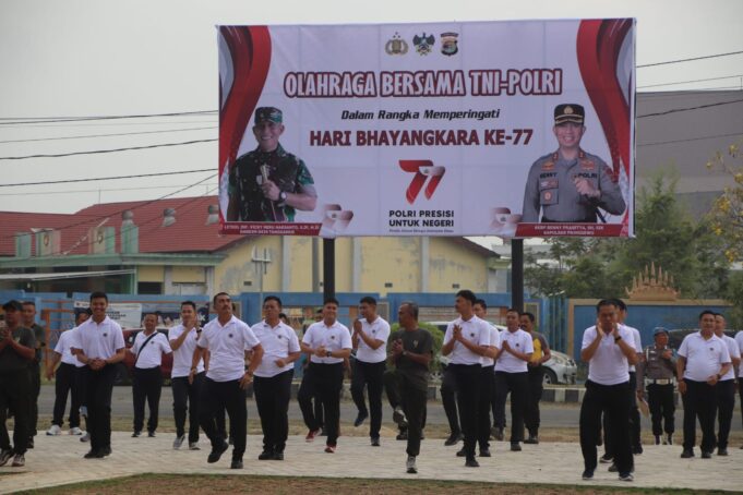 Kapolres Pringsewu AKBP Benny Prasetya mengatakan kegiatan olah raga bersama ini dilaksanakan dalam rangka menyambut Hari Bhayangkara ke-77, yang bertujuan untuk meningkatkan soliditas TNI-POLRI.