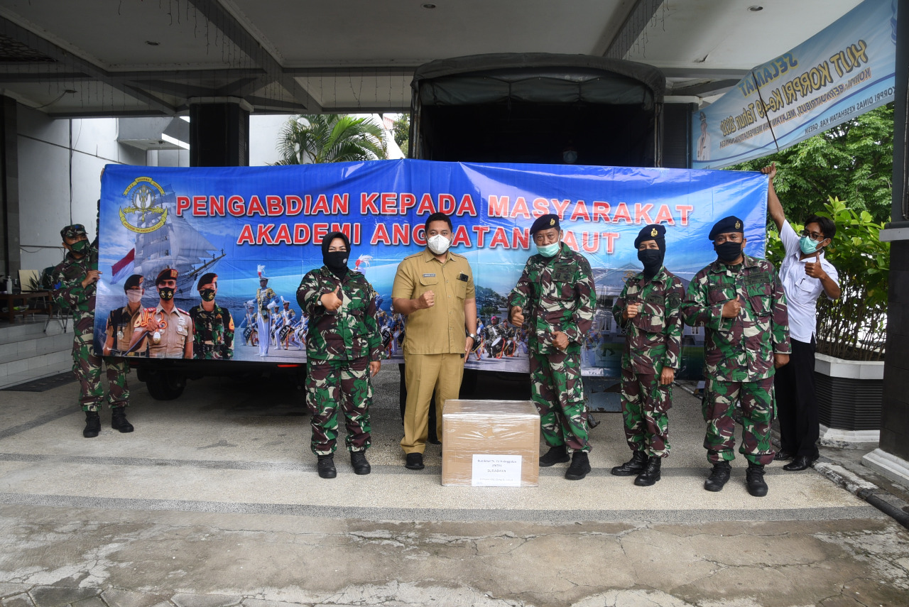 Kepala LPPM AAL, Letkol Laut (KH) Dr. Muh. Saikhu, S.Ag., M.A.P., CTMP. mewakili Gubernur AAL, Laksda TNI Tunggul Suropati, S.E., M.Tr (Han) mengatakan bahwa Bakti Sosial yang digelar kali ini berupa penyerahan Alat Kesehatan berupa 1000 set Alat Pelindung Diri (APD) Covid-19 dan 1200 alat Rapid test kepada Dinas Kesehatan Kabupaten Gresik yang diterima Damar staf SDK.
