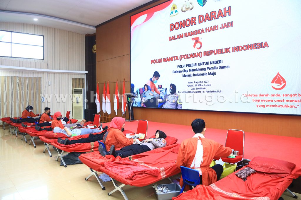 JAKARTA – Maspolin.id|| Dalam rangka peringatan Hari Ulang Tahun (HUT) yang ke-75, Polwan menggelar acara donor darah di Aula Boediharto Rumah Sakit Bhayangkara TK I Pusdokkes Polri R.S Soekanto, Kramat Jati, Jakarta Timur, Rabu (9/8/2023).