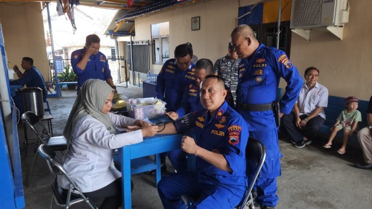 Kegiatan Bakti kesehatan donor darah dalam rangka memperingati HUT Polairud ke-73 dengan tema Polairud Presisi siap mengamankan Pemilu Damai Menuju Indonesia Maju.