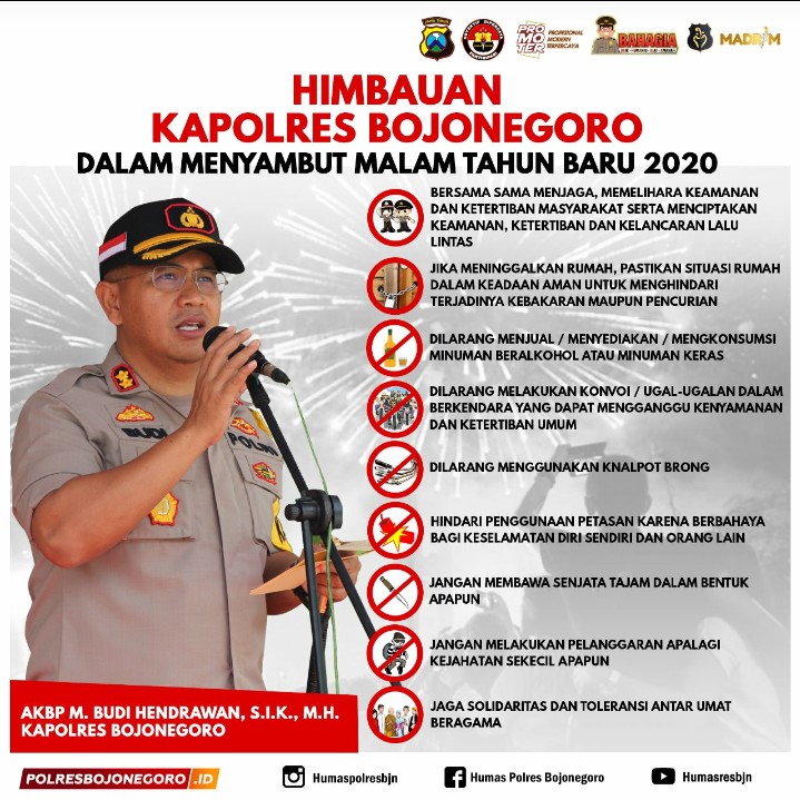 Berikut himbauan Himbauan Kapolres Bojonegoro Menjelang Natal Dan Tahun Baru 2020 :