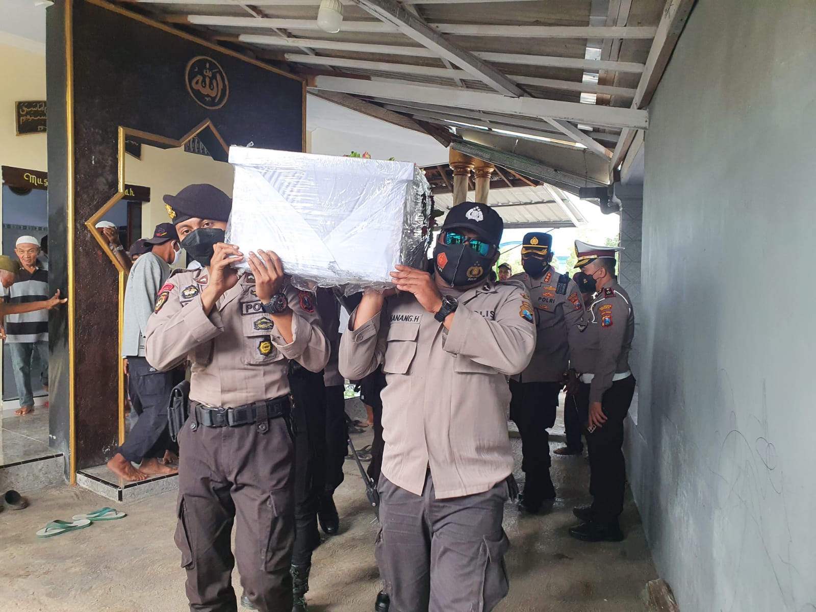 Kedatangan jenazah, mendapat pengawalan dari aparat Kepolisian dari Polda Jatim, Polresta Sidoarjo dan Polres Lumajang. Jenazah diantar menggunakan ambulan milik Polda Jatim menuju rumah duka.