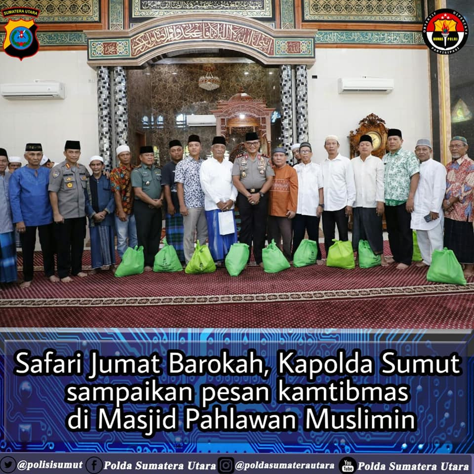 Di awal sambutannya Kapolda Sumut memperkenalkan diri selaku kapolda Sumut dan menyampaikan akan memberikan pengabdian terbaik untuk masyarakat sumut. ” saya butuh 32 tahun untuk bisa bertugas di kampung halaman saya” ucap Kapolda Sumut. Tujuan Kapolda Sumut ke masjid pahlawan muslimin yaitu untuk melaksanakan jumat berokah yg bertujuan mendekatkan diri dan menjalin silaturrahmi dengan saudara yg beragama muslim, sedangkan di hari minggu melaksanakan program minggu kasih ke gereja – gereja di Sumatera Utara.