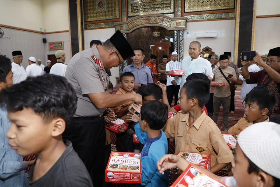 Di akhir sambutan kapolda Sumut menyampaikan silaturrahmi ini dapat berlanjut terus sampai kedepannya, jangan segan segan mengundang saya. Kegiatan di lanjutkan dengan pemberian tali asih untuk keperluan masjid dan pemberian sembako untuk jamaah yang hadir.*