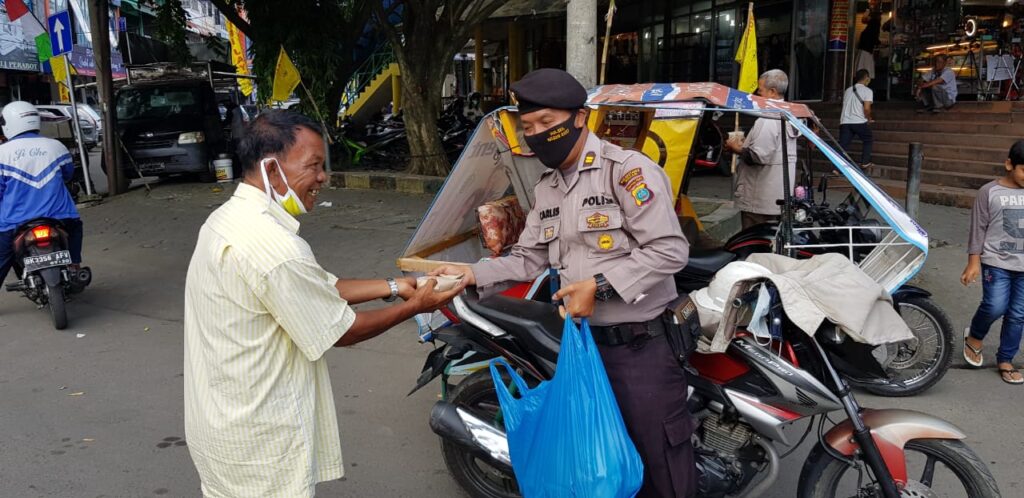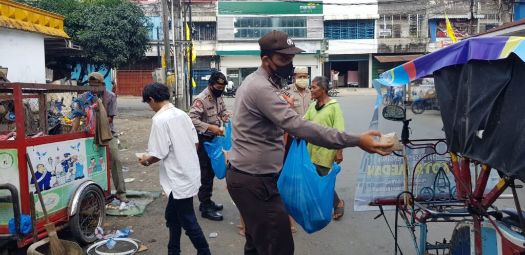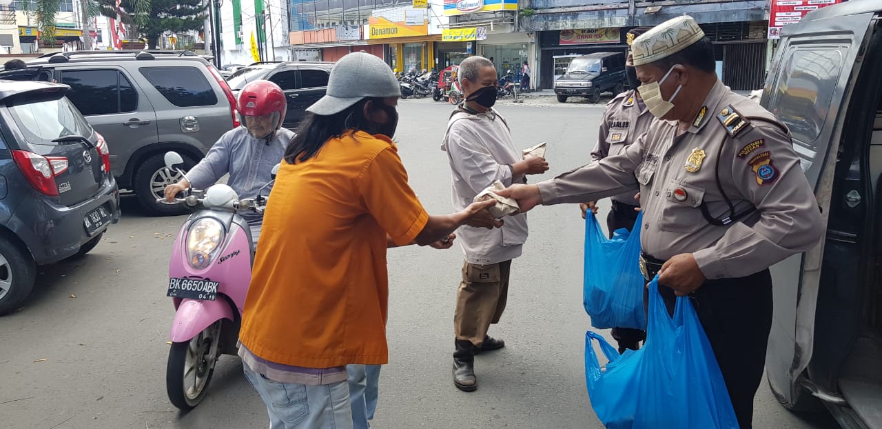Jumat Barokah Polsek Medan Baru Berbagi 100 Bungkus Nasi Kepada Abang Beca, Juru Parkir dan Petugas Kebersihan