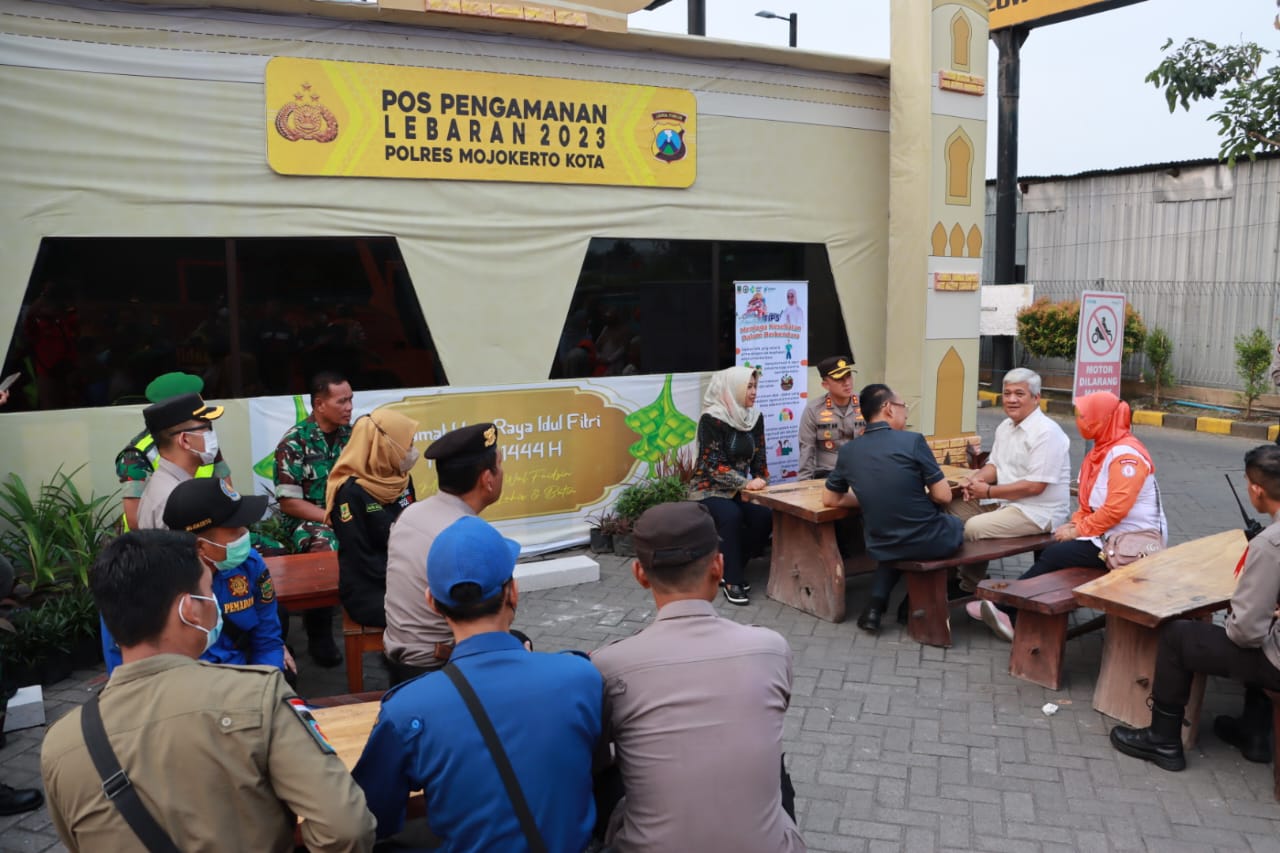 Kota Mojokerto – Maspolin.id|| H-1 Jelang Idul Fitri atau hari jumat terakhir dibulan Ramadan, Kapolresta Mojokerto bersama Walikota melaksanakan peninjauan Pos sekaligus menggelar jumat curhat dengan pemudik dan tim medis di Pospam dan Posyan.