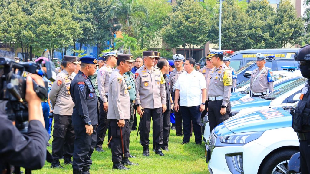 Komjen Pol Wahyu Widada memeriksa kendaraan, Almatsus termasuk kesiapan personel yang terlibat operasi yang dikhususkan pengamanan di Kota Surabaya.