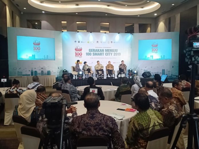 “Gerakan menuju 100 smart city 2019, merupakan upaya mendorong daerah untuk segera mengimplementasikan tatakelola pemerinntahan berbasis elektronik (SPBE) sebagaimana diatur dalam Perpres 95 thun 2018.