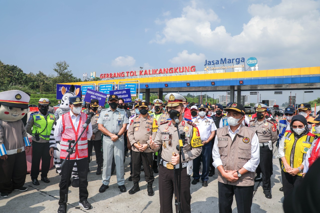 SEMARANG – Maspolin.id|| Kepala Korps Lalu Lintas (Kakorlantas) Polri, Irjen Pol Firman Shantyabudi memimpin langsung rekayasa lalu lintas one way atau satu arah di gerbang tol Kalikangkung, Jawa Tengah, Jumat (6/5/2022) siang. Firman menyebut one way dimungkinkan berlaku 24 jam.