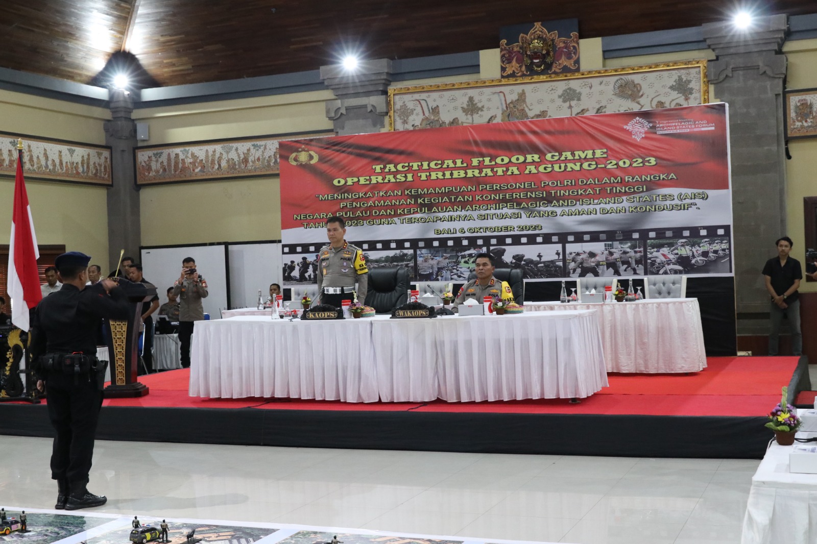 “Pada Tactical Floor Game yang ini bertujuan untuk mengetahui detail tentang pelaksanaan pengamanan baik Ring 1, 2 dan 3, yang mungkin pada pelaksanaan nya akan bergerak dinamis namun sekiranya dengan perencanaan awal ini maka pelaksanaannya pun tidak akan jauh berubah walaupun pada saat event KTT AIS FORUM 2023 situasinya akan dinamis,” demikian pungkas Kapolda Bali