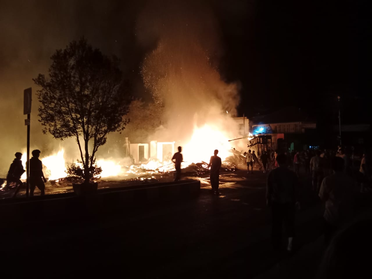 Adapun 9 bangunan yang terbakar terdiri dari empat rumah makan yakni Rumah Makan Elsa, Rumah Makan Simpang 3 Raya, Rumah Makan Putra Minang dan Rumah Makan Adian Bania, kemudian satu toko foto copy, dua toko kelontong milik Ical dan Lian, serta dua rumah milik Masna dan Tigor.