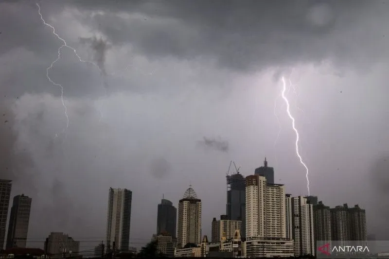 BMKG mengingatkan potensi hujan yang dapat disertai petir dan angin kencang melanda sebagian wilayah Jakarta Barat, Jakarta Pusat, Jakarta Selatan, dan Jakarta Timur pada siang dan sore hari.
