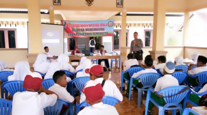 Tuban,Maspolin.id – Palang Polres Tuban berikan penyuluhan tentang bahaya Napsa bersama UPTD Puskesmas Sumurgung kepada remaja dan anak anak sekolah yang ada di Desa Sumurgung Kecamatan Palang Kabupaten Tuban, pada hari Selasa(23/4/2019).
