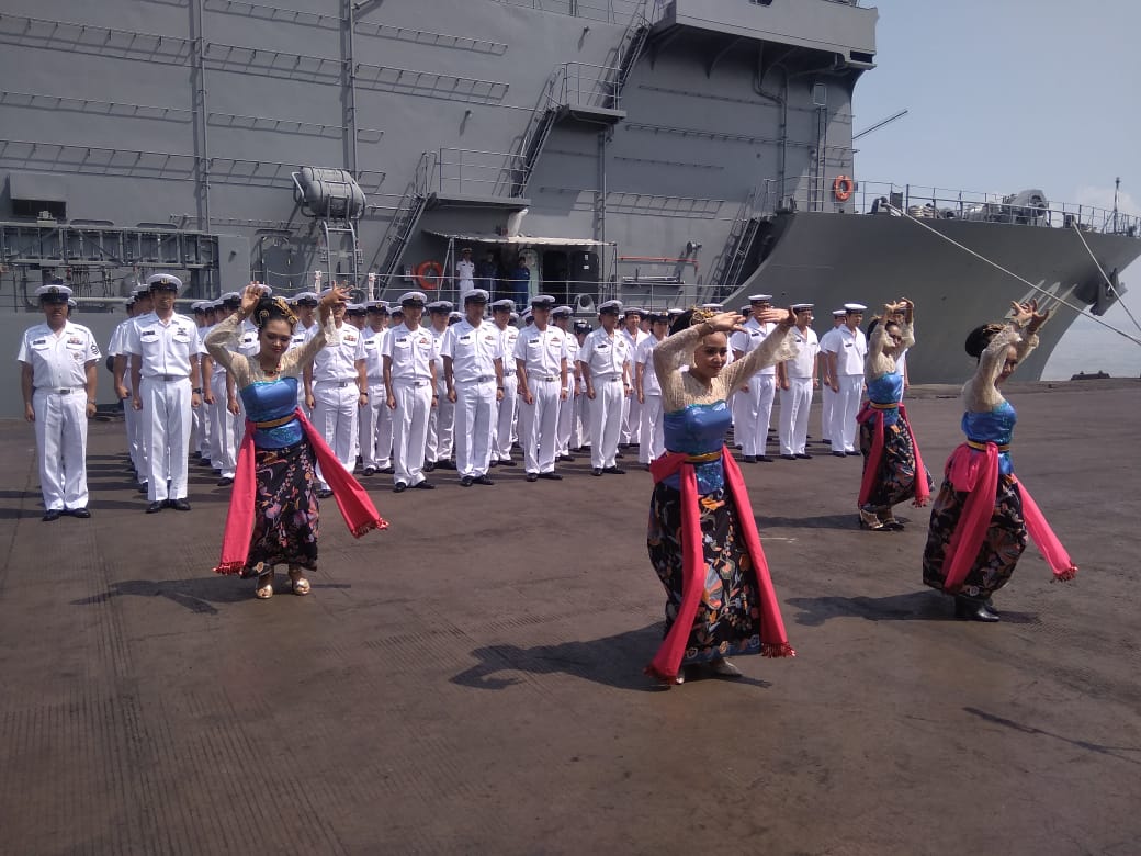 Kapal perang JS Chiyoda yang di Komandani Commander Shinobu Watanabe ini tiba pukul 8.30 Wib. Kehadiran pasukan AL Jepang ini disambut dengan tarian Mojang Periangan dari Sanggar Manunggal Cipta mandiri Surabaya.