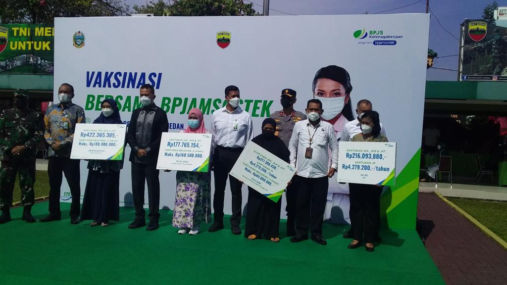 Langkah Vaksinasi ini merupakan salah satu cara agar pandemi Covid-19 dapat segera berakhir. Pelaksanaan Vaksinasi ini pihak BP Jamsostek menjalin kerjasama dengan Dandim 0201 Medan dilaksanakan selama 3 hari dengan target 5.000 para pekerja Kota Medan, sebut Brigjen TNI Junaidi