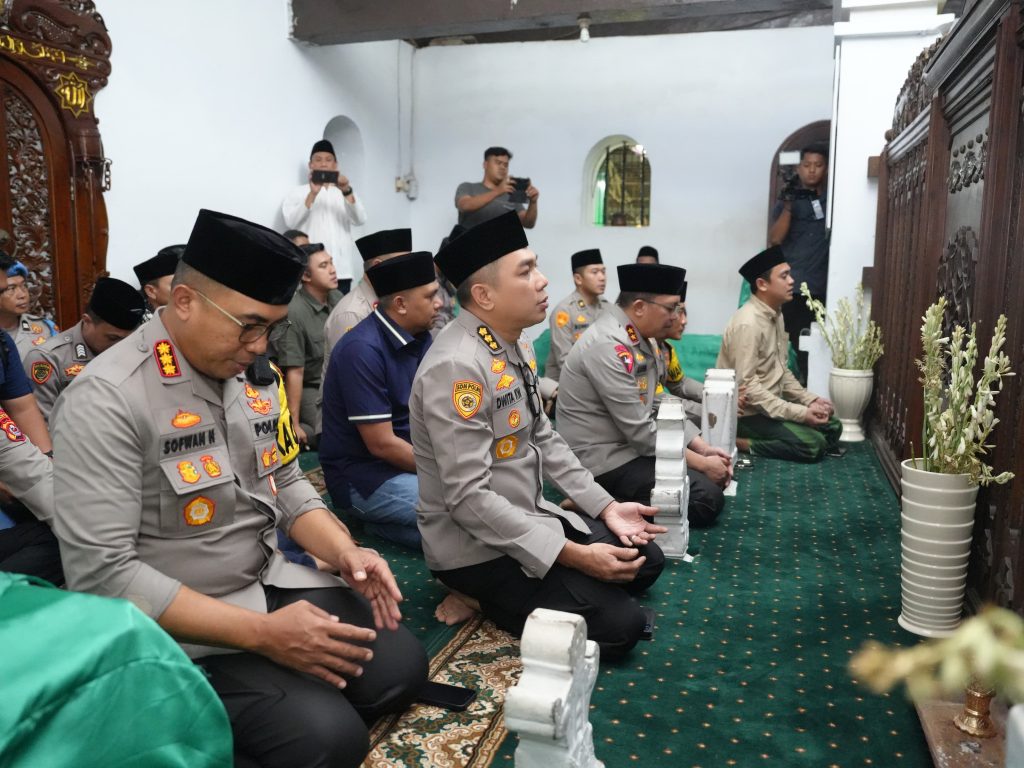 SERANG – Maspolin.id|| Kapolda Banten Irjen Pol Abdul Karim, S.I.K., M.Si didampingi Wakapolda Banten Brigjen Pol H. M. Sabilul Alif dan sejumlah Pejabat Utama Polda Banten melaksanakan Ziarah ke makam Sultan Maulana Hasanuddin, di Banten Lama, Kecamatan Kasemen, Kota Serang pada Selasa (28/11) sekitar pukul 19.00 WIB.