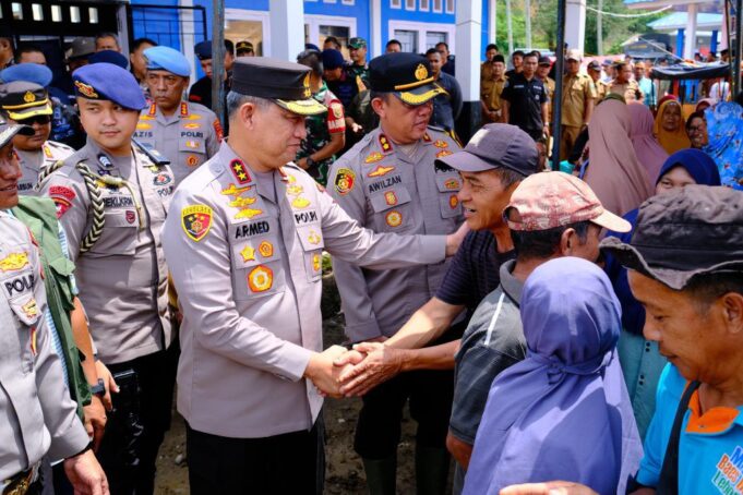 Lebong – Maspolin.id|| Sebagai wujud kepedulian terhadap korban banjir di kabupaten Lebong tepatnya di Kecamatan Topos dan Rimbo Pengadang, Selasa (23/04/2024) Kapolda Bengkulu Irjen Pol Drs. H. Armed Wijaya, M.H. tatap muka secara langsung menemui masyarakat yang terdampak langsung bencana banjir. Bertempat di halaman SMPN 17 Lebong, Kapolda Bengkulu yang juga didampingi beberapa pejabat utama memberikan bantuan secara simbolis kepada warga setempat.