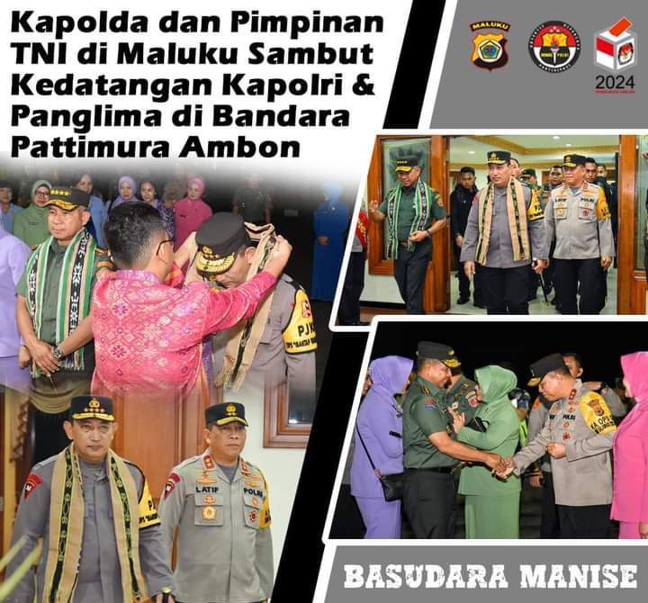 “Bapak Kapolri dan Bapak Panglima TNI sudah tiba di Ambon. Tadi dijemput langsung oleh Bapak Kapolda dan Bapak Pangdam bersama Pimpinan TNI di Maluku di Bandara Pattimura Ambon,” kata Kabid Humas Polda Maluku, Kombes Pol M. Rum Ohoirat, Sabtu (09/12/2023) waktu setempat.