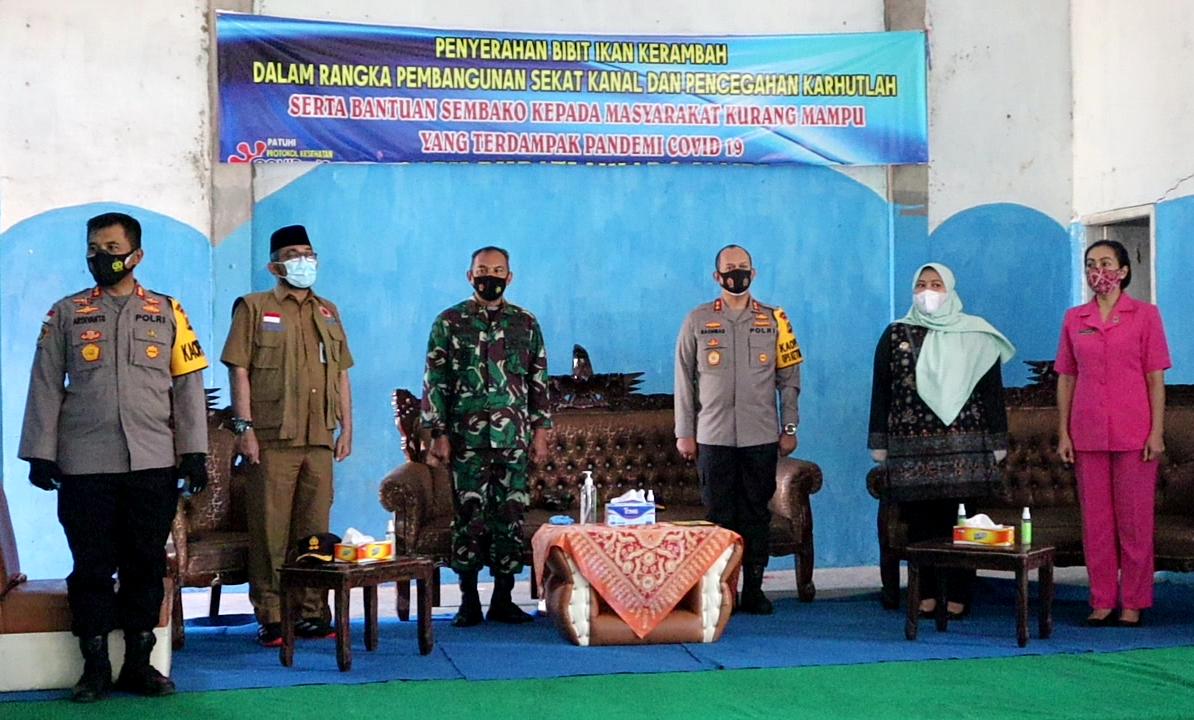 Kapolda Jambi Bersama Forkopimda muaro jambi Serahkan Bibit Ikan Rangka Pembangunan Skat Kanal dan Bantuan Sembako Covid19
