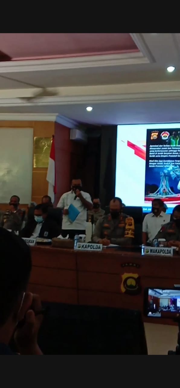 Jambi, Maspolin.id—Paparan Kapolda Jambi terkait kinerja Polda Jambi di tahun 2020 disampaikan pada Press Rilis akhir tahun oleh Kapolda Jambi Irjen Pol A. Rachmad Wibowo SIK bersama awak media di Aula Siginjai Polda Jambi pada Rabu 30/12/2020 pukul 10.15 wib.