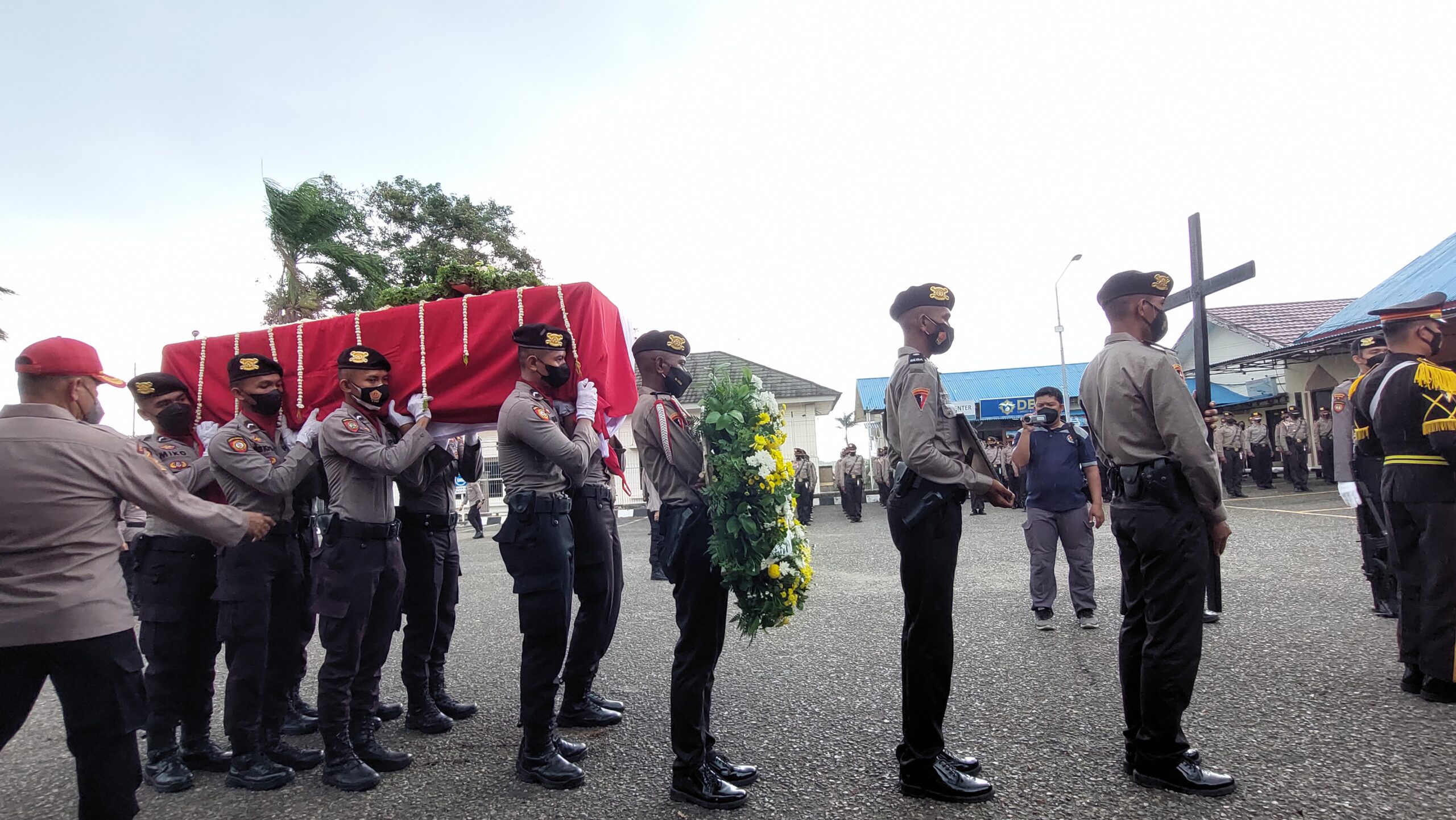 Sekira pukul 13.15 Wib jenazah diberangkatkan dari RS Bhayangkara menuju bandara Sulthan Thaha. Sebelum diberangkatkan terlebih dahulu dilakukan apel pelepasan Jenazah yang dipimpin oleh Wakapolda Jambi Brigjen Pol Yudawan meski diguyur hujan.