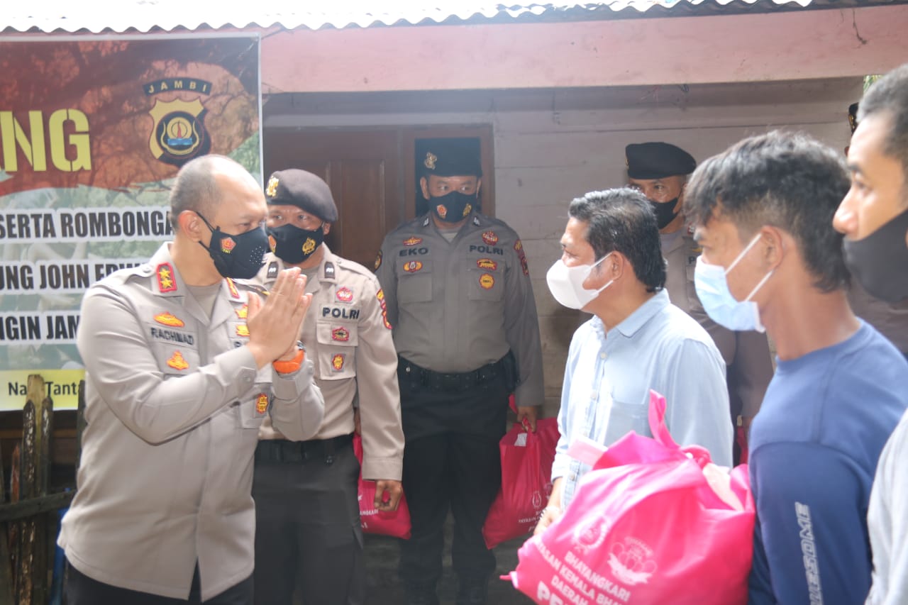 Kapolda Jambi Memberi Bantuan Sembako Kepada SAD Sebagai Wujud Kepedulian Di Masa Pademi Covid 19