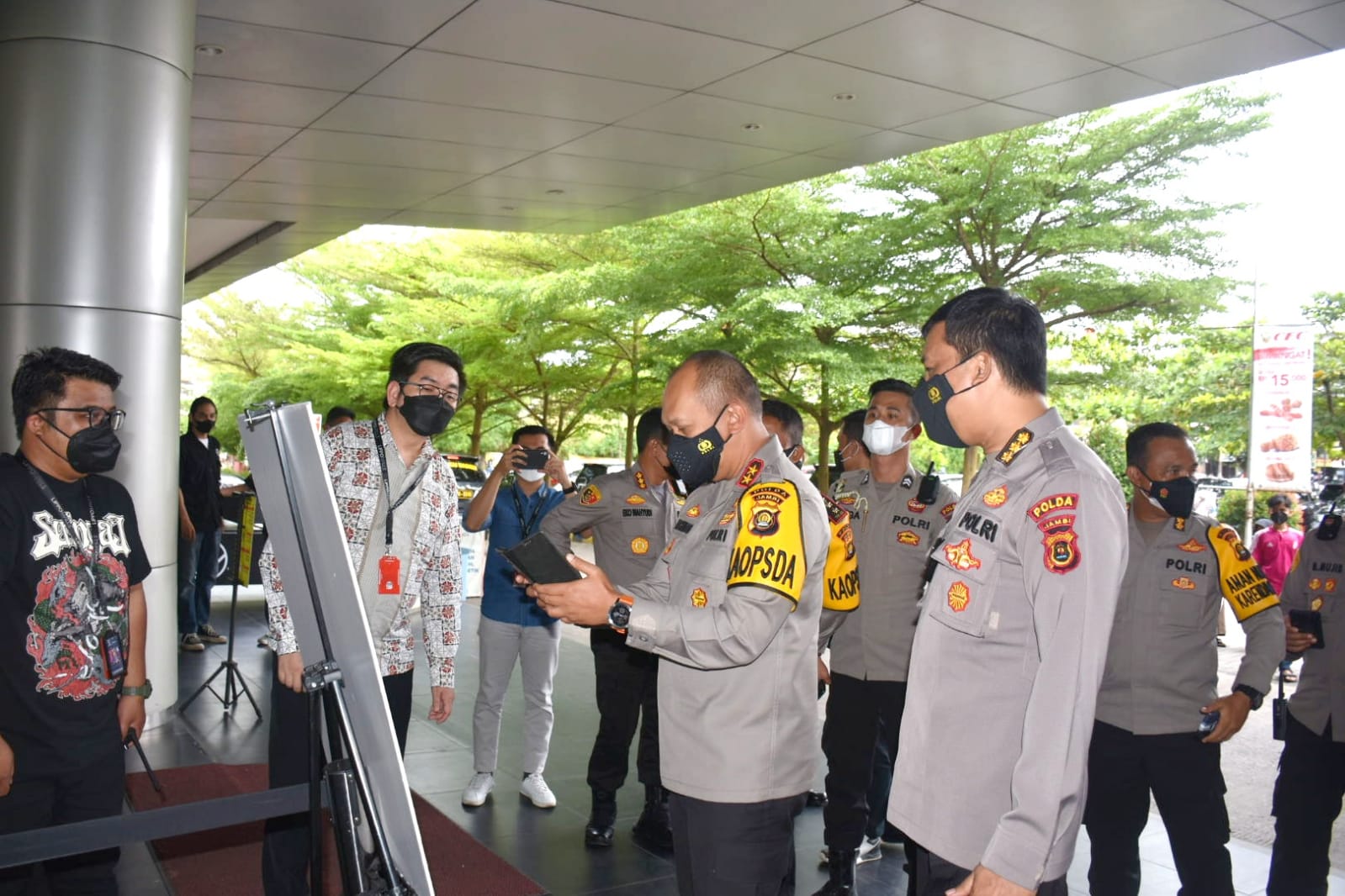 Jambi, Maspolin.id – Kapolda Jambi Irjen Pol A Rachmad Wibowo SIk mencoba penerapan scan barcode aplikasi PeduliLindungi di pintu masuk Mall didampingi oleh Mall Director, Harry Gunawan, yang bertempat di Mall Lippo Plaza, Kamis (23/9/21) sore.