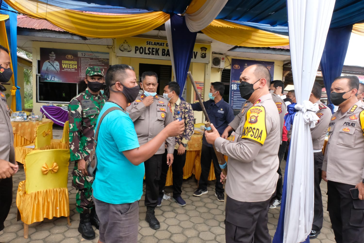 Jambi – Maspolin.id// Usai mengecek Pos Terpadu penyekatan di Jaluko dan Jembatang Timbang di Muaro Bulian, Kapolda Jambi, Irjen Pol A Rachmad Wibowo, SIk melakukan silaturahmi dengan Perwakilan orang rimba atau Suku Anak Dalam (SAD) Batanghari pimpinan Temenggung Ngelembo di Halaman Polsek Batin XXIV, Batanghari, Kamis (11/11/21).