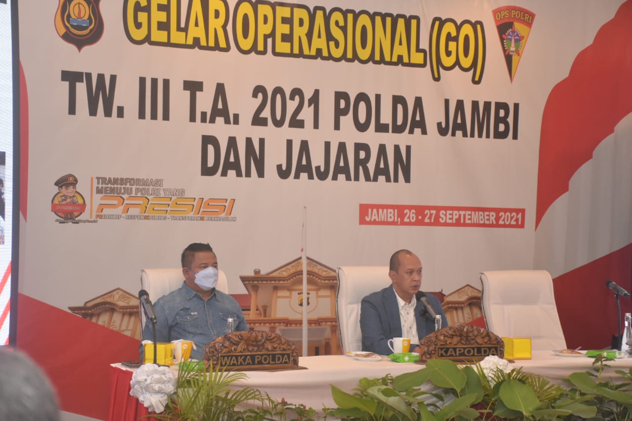Jambi, Maspolin.id – Polda Jambi melalui Satker Biro Operasi mengadakan rapat Gelar Operasional Triwulan III Tahun Anggaran 2021 Polda Jambi dan Jajaran, di hotel Yello Komplek Transmart Kota Jambi Minggu (26/9/2021).
