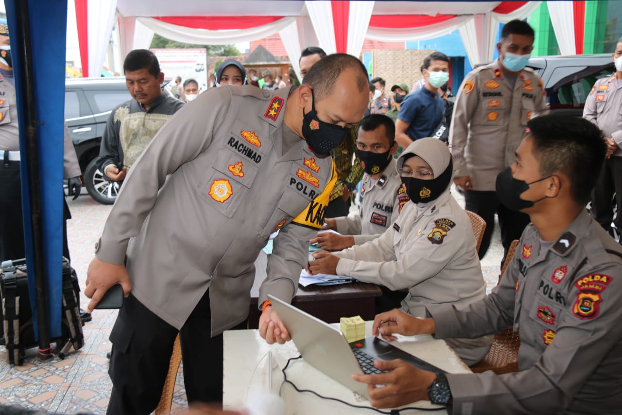 Kapolda Jambi Tinjau Vaksinasi Massal Polres Bungo Di STKIP Muhammadiyah Muara Bungo