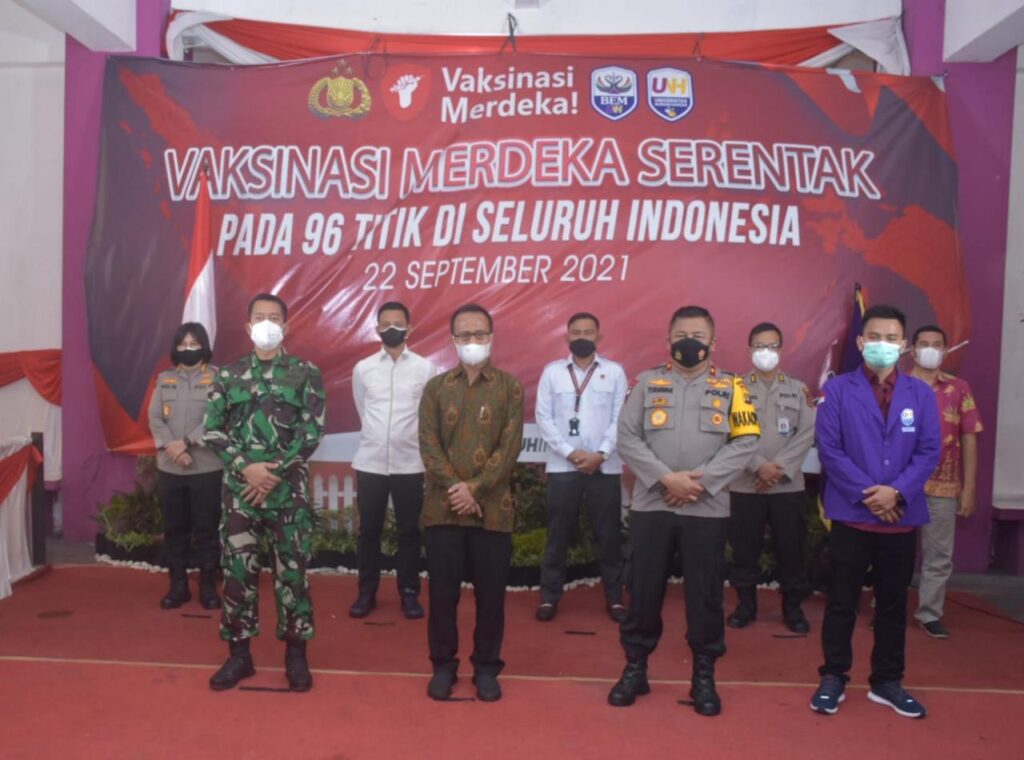 Jambi – Maspolin.id|| Kapolda Jambi Irjen Pol A Rachmad Wibowo, SIk meninjau pelaksanaan vaksinasi massal di Universitas Nurdin Hamzah Jambi, Jalan Kolonel Abunjani RT. 25, Kec. Telanaipura, Kota Jambi yang bertajuk Kegiatan Vaksinasi Merdeka Serentak Pada 96 Titik Di Seluruh Indonesia, Rabu (22/9/21).