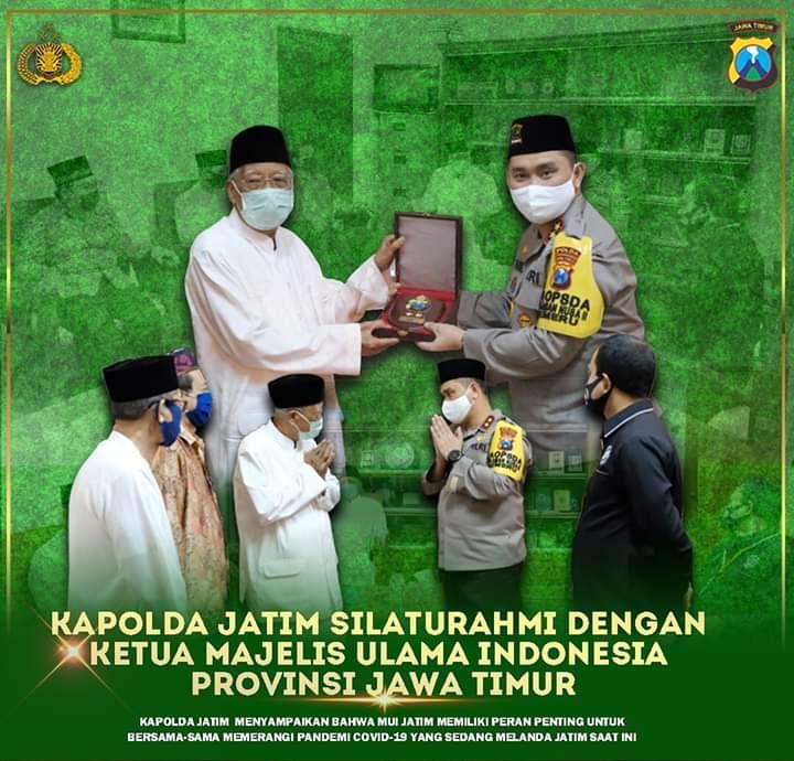 Kapolda Jatim melakukan silaturahmi kepada Ketua MUI Jatim KH. Abdussomad Buchori di kantor dinasnya Jl. Dharmahusada Surabaya, untuk meminta bimbingan dalam mengemban amanah sebagai Kapolda Jatim serta Polda Jatim siap membantu MUI dalam melakukan amar ma’ruf nahi munkar.