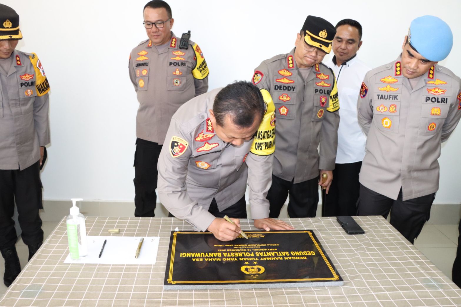 Setelah meninjau sejumlah pelayanan publik dan Satpas Polresta Banyuwangi, Kapolda Jatim Irjen Pol Toni Harmanto didampingi Pejabat Utama Polda Jatim melakukan penanaman pohon pole di halaman Kantor Satpas Prototype Polresta Banyuwangi. Dilanjutkan dengan penandatanganan prasasti peresmian gedung Satlantas Polresta Banyuwangi.