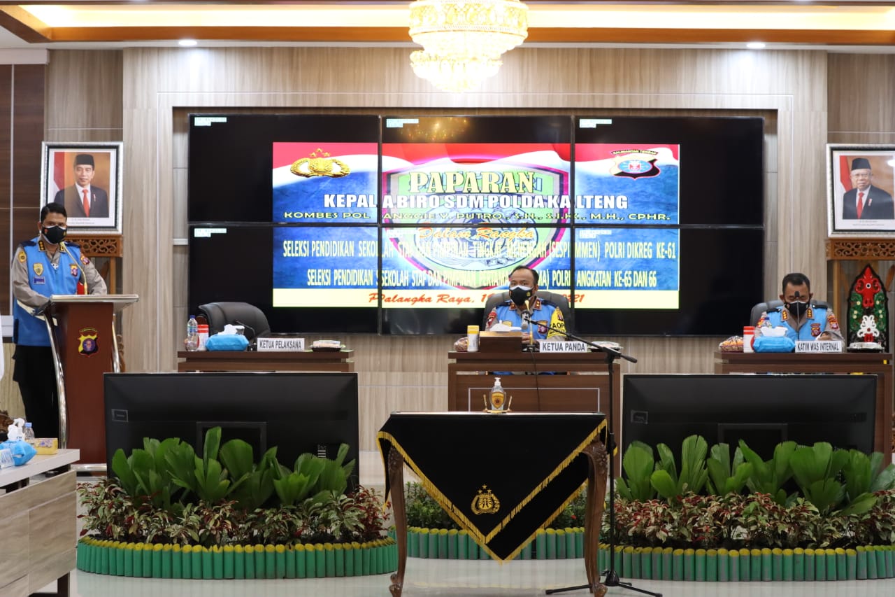 Menyikapi hal tersebut Kapolda Kalteng Irjen Pol Dr. Dedi Prasetyo memimpin langsung penandatanganan pakta integritas dan pengambilan sumpah panitia dan peserta seleksi pendidikan Sekolah Staf dan Pimpinan Menengah (Sesspimmen) Polri Digreg Ke -61 dan Sekolah Staf dan Pimpinan Pertama (Sesspimma) Polri angkatan Ke – 65 dan 66 tahun anggaran 2021, yang bertempat di Aula Arya Dharma Mapolda Kalteng, Selasa (19/01/2021).