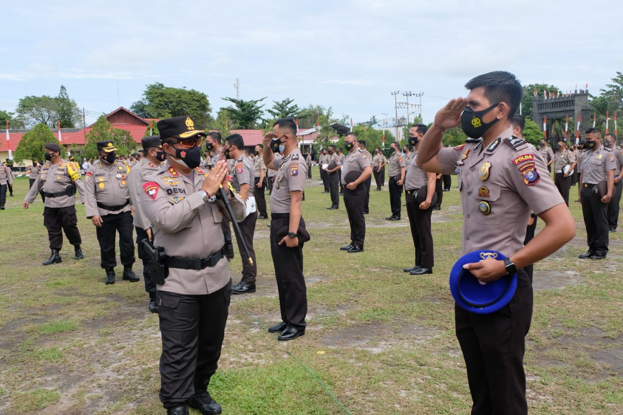 MASPOLIN || Palangka Raya (Kalteng) — Mengawali tahun 2021, Kapolda Kalteng Irjen Pol. Dr. Dedi Prasetyo memimpin langsung upacara korp kenaikan pangkat 353 personel Polda Kalteng yang bertempat di Lapangan Barigas Mapolda Kalteng, Jumat (01/01/2021).