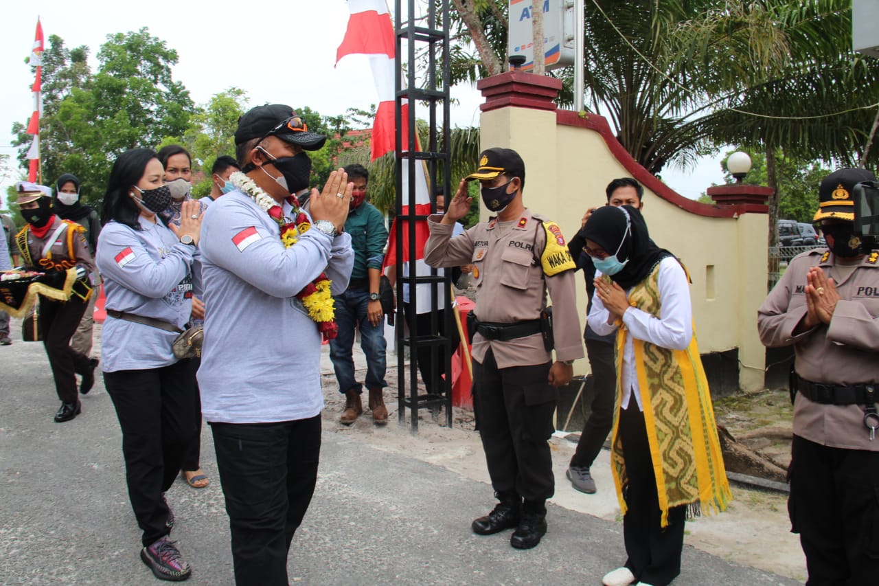 Kedatangan Kapolda Kalteng disambut oleh Kapolres Sukamara AKBP I Gede Putu Dedy Ujiana dan jajarannya, kemudian Kapolda Kalteng meresmikan gedung penjagaan Polres Sukamara Polda Kalteng, Sabtu (31/10/2020).