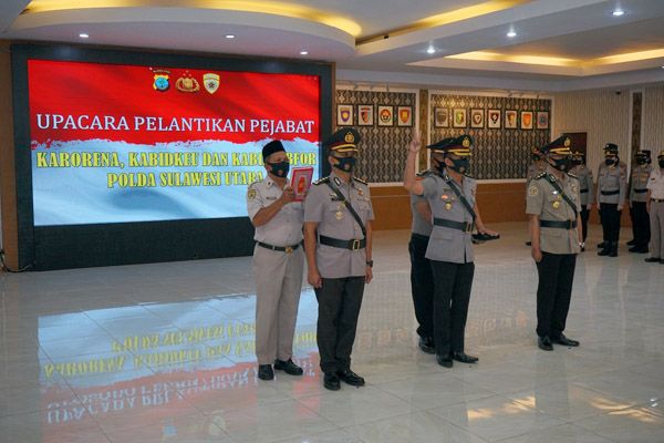 Tiga pejabat baru yang dilantik yaitu, Karorena Kombes Pol Andy Kemala, sebelumnya menjabat Kabaganevgar Romonev Srena Polri. Kemudian Kabidkeu AKBP Marojahan Denny Situmorang, sebelumnya menjabat Wadirsamapta Polda Sulut. Dan Kabidlabfor AKBP Hartanto Bisma, sebelumnya sebagai Pamen Puslabfor Bareskrim Polri.