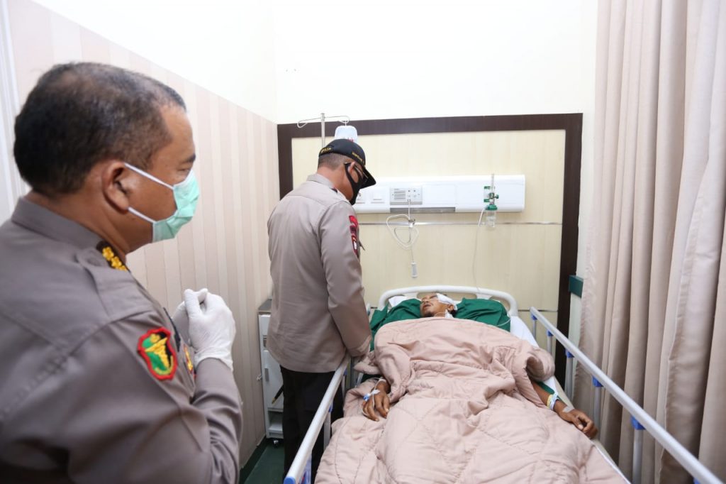 Medan, Maspolin.id—Kepala Kepolisian Daerah Sumatera Utara Irjen Pol. Drs. Martuani Sormin, M.Si didampingi Karumkit Bhayangkara TK I Medan mengunjungi Aipda Daely Personel Sat Reskrim Polres Pelabuhan Belawan yang menjadi korban pembacokan massa saat tangkap DPO di Lorong Supir Kel. Belawan I, Kec. Medan Belawan, Rabu (10/06/2020) malam.