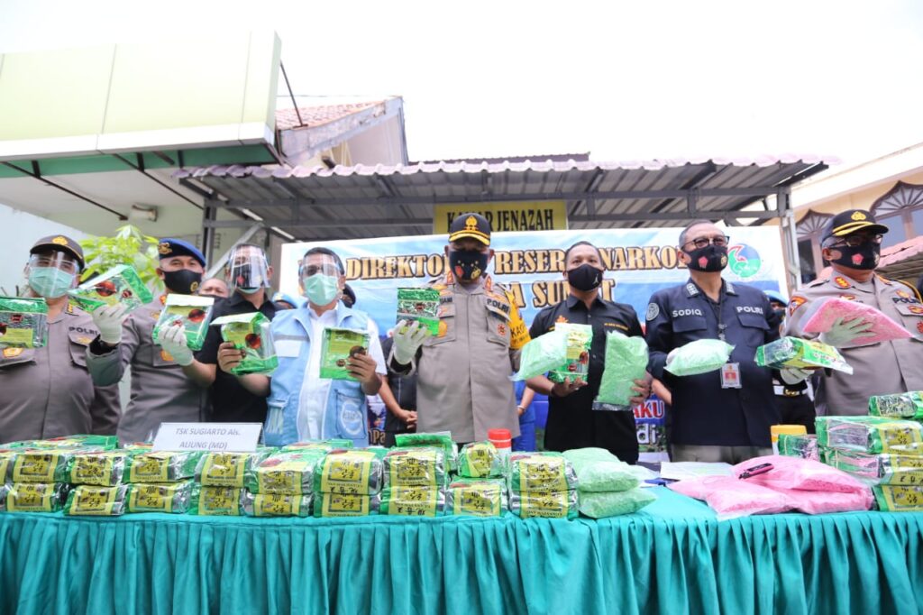 Kapolda Sumut mengatakan dari hasil barang bukti yang disita berupa 100 kg Sabu berhasil menyelamatkan 1 juta anak bangsa serta 50 ribu butir pil ekstasi berhasil menyelamatkan 50 ribu anak bangsa