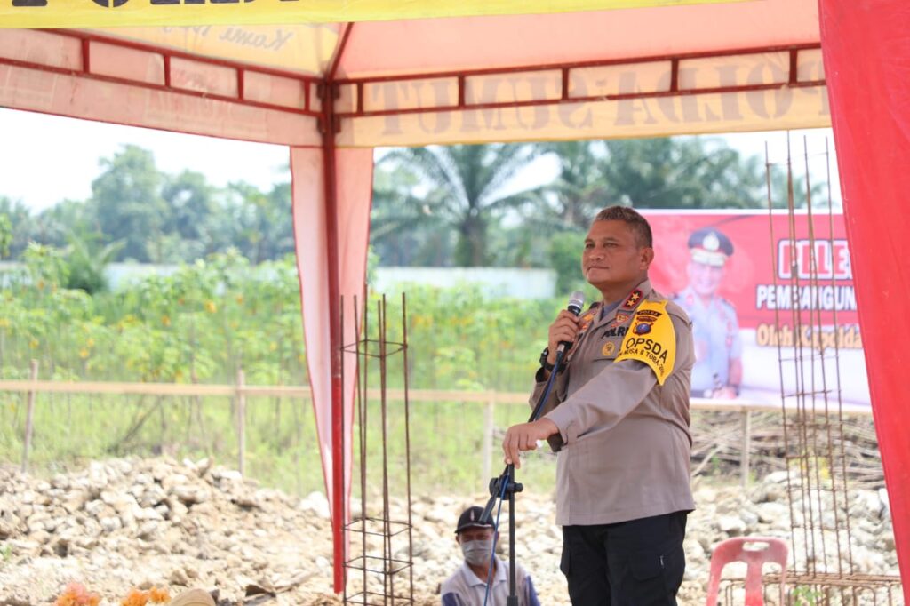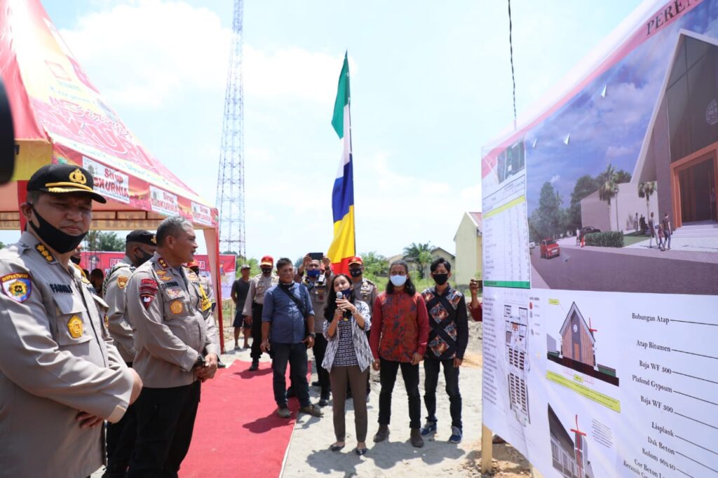 Dalam kunjangan kerjanya, Kapoldasu meninjau langsung proses pembangunan rumah ibadah masjid dan Gejera Oikumene SPN Hinai.
