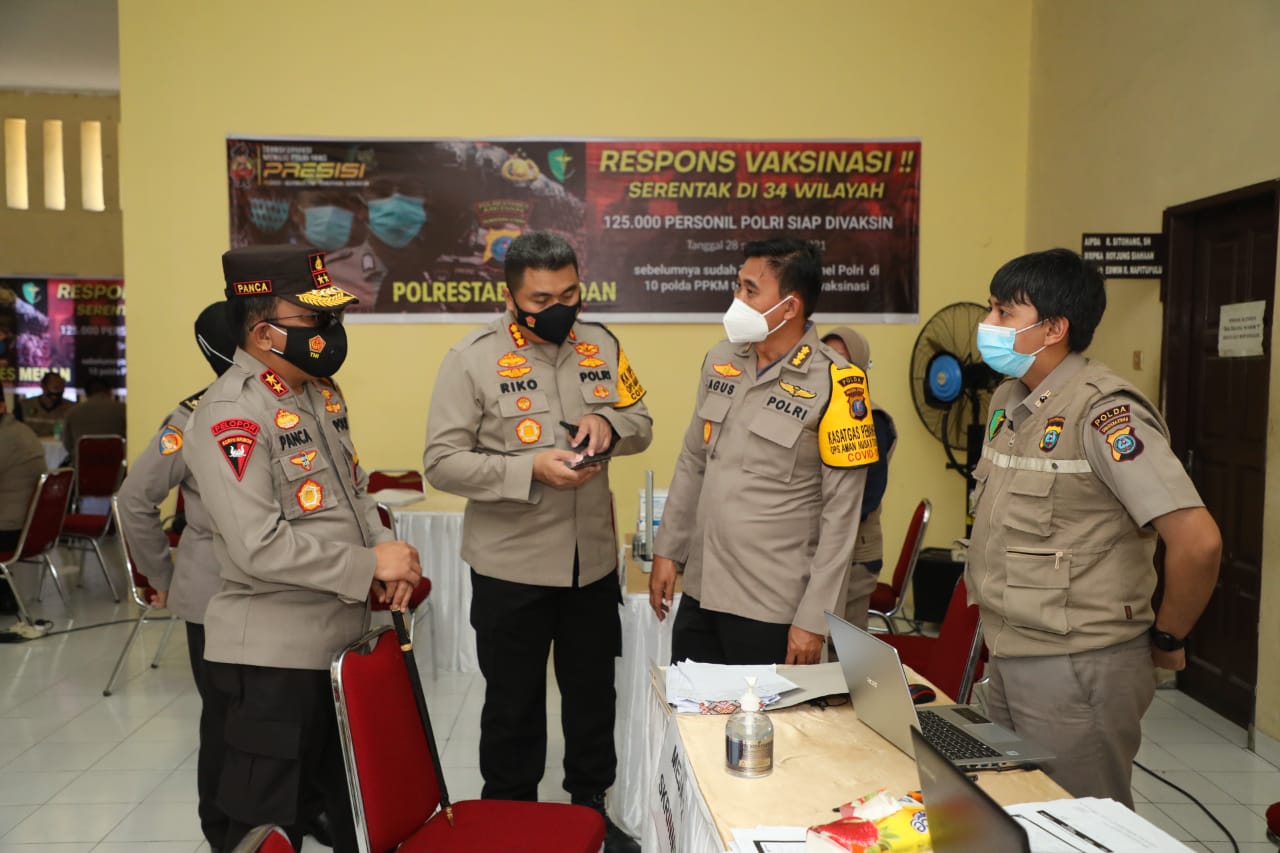 Dalam proses percepatan itu, Kapolda Sumut, Irjen Pol RZ Panca Putra Simanjuntak, turut mengawal penyuntikan vaksinasi yang berlangsung di Mapolrestabes Medan.