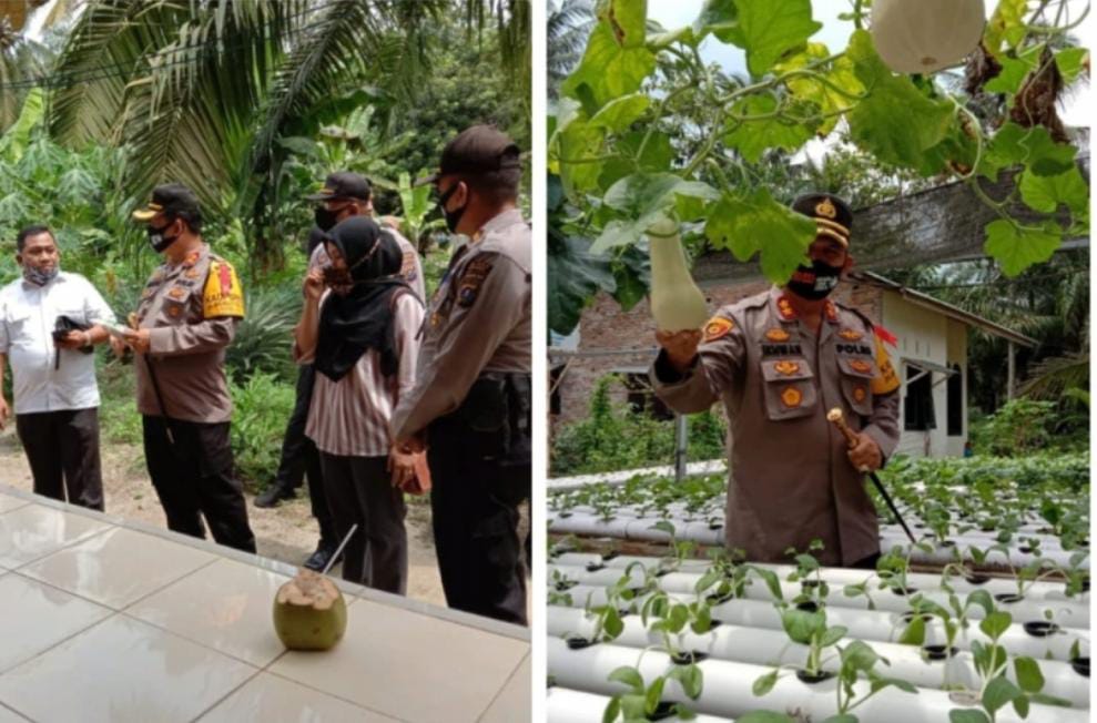 Batu Bara, Maspooin.id—Kapolres Batu Bara AKBP. Ikhwan Lubis SH. MH beserta jajarannya meninjau tanaman jamur tiram dan sawi milik Bhabinkamtibnas, Kamis ( 28/5/2020 ).