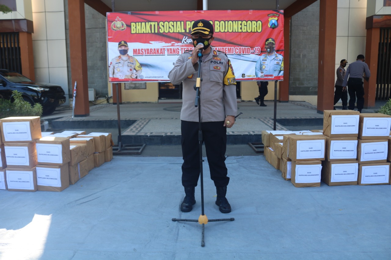 Dalam sambutan Kapolres Bojonegoro menyampaikan bahwa pemberian bantuan itu dilakukan sebagai wujud simpati Polres Bojonegoro kepada ojol yang saat ini tengah merasakan dampak covid-19. Di samping itu untuk meringankan beban secara ekonomi di tengah tengah situasi pandemi covid-19 yang masih mewabah ini.