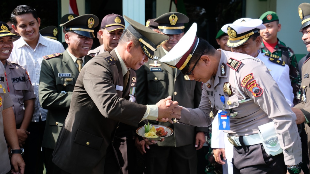 Cilacap, Maspolin.id – Di HUT TNI ke-74 ini Polres Cilacap secara mengejutkan datang ke Kodim 0703/Cilacap, Denpom TNI Cilacap, dan Lanal Cilacap, dengan membawa kue taart dan nasi tumpeng untuk anggota TNI.