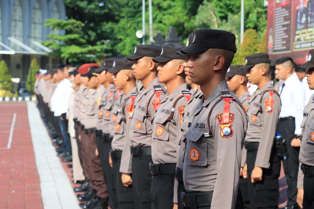 Gresik – Maspolin.id|| Kapolres Gresik AKBP Adhitya Panji Anom menyerahkan secara simbolis buku saku panduan pengamanan pemilu 2024 dan netralitas Polri kepada perwakilan personel di halaman Mapolres Gresik, Senin (11/12/2023).