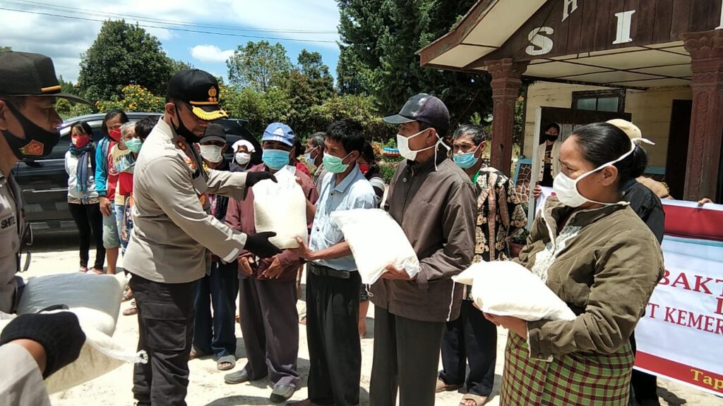 Dalam giat bakti sosial tersebut, kapolres humbahas meminpin langsung pemberian beras Kepada masyarakat miskin dan anak yatim piatu terdampak covid-19 di kabupaten humbahas.