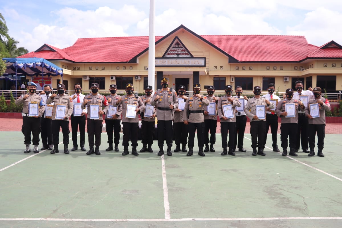 Medan – Maspolin.id// Kapolres Mandailing Natal AKBP H.M. Reza Chairul A.S, S.I.K, S.H, M.H Memberikan Reward Kepada 18 (delapan belas) personil Polres Madina dan Polsek sejajaran serta Satuan Fungsi Reserse Narkoba Polres Madina, Senin Pagi (24/01/2022) sekira pukul 09.00 Wib, dihalaman apel Mako Polres Madina.