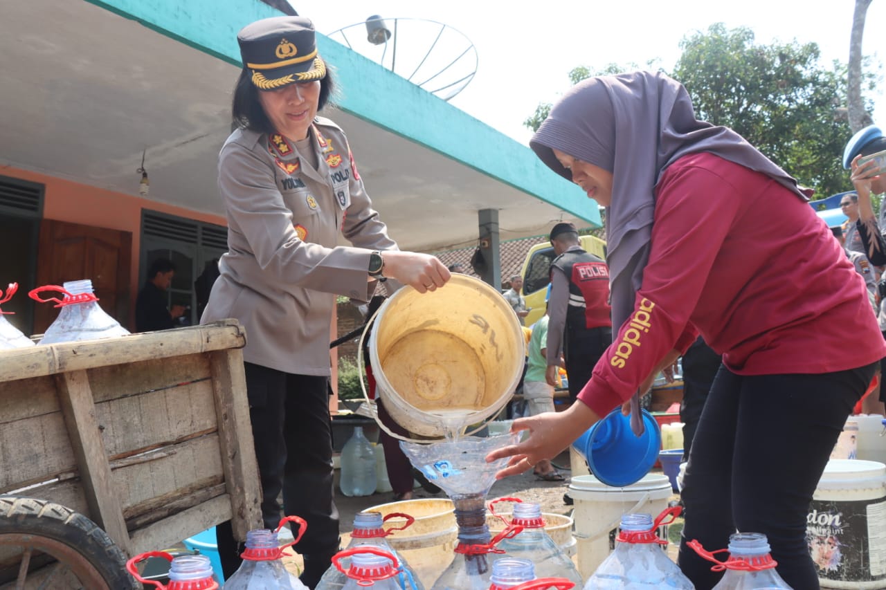 Magelang – Maspolin.id|| Kapolres Magelang Kota, AKBP Yolanda Evalyn Sebayang, S.I.K., M.H, melakukan aksi peduli terhadap masyarakat dengan menyalurkan bantuan air bersih sejumlah 8.000 liter kepada warga Desa Dlimas, Kecamatan Tegalrejo, Magelang. Bantuan air bersih ini disalurkan melalui dua truk tangki air dari PDAM Kota Magelang dan didampingi oleh sejumlah Pejabat Utama (PJU) Polres Magelang Kota. Kamis, (12/10/2023)