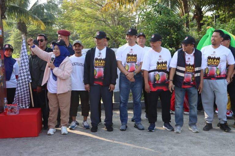 Acara jalan sehat tersebut diwarnai dengan berbagai kegiatan senam bersama, penampilan kesenian lokal, dan pameran produk-produk lokal.